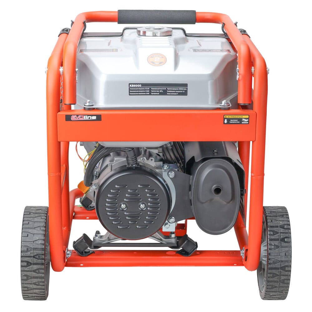 Электрогенератор EVOline KB 6000 – бензиновый однофазный (1 фазный) генератор с максимальной мощностью 5,5 кВА. Силовым агрегатом данной модели является четырехтактный двигатель ZONGSHEN GB 420. Рама выполнена из высококачественной стали, которая служит не только для защиты двигателя, но и для удобной транспортировки электростанции. Объем топливного бака составляет 32 литра, что дает примерно 13 часов непрерывной работы в зависимости от нагрузки. Уровень шума при работе генератора составляет 74,5 дБ. Данная модель идеально подходит как для дома, так и для малого или среднего бизнеса. Оснащена транспортировочным комплектом с колесами, счетчиком мото-часов и 2-мя розетками (одна из которых - силовая, т.е. на 32А), имеет размер (70х53х59) см и вес (79 кг). Гарантия составляет 2 года.
